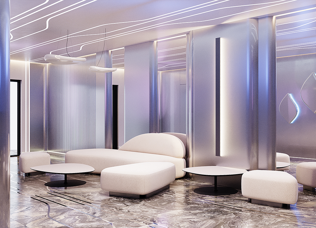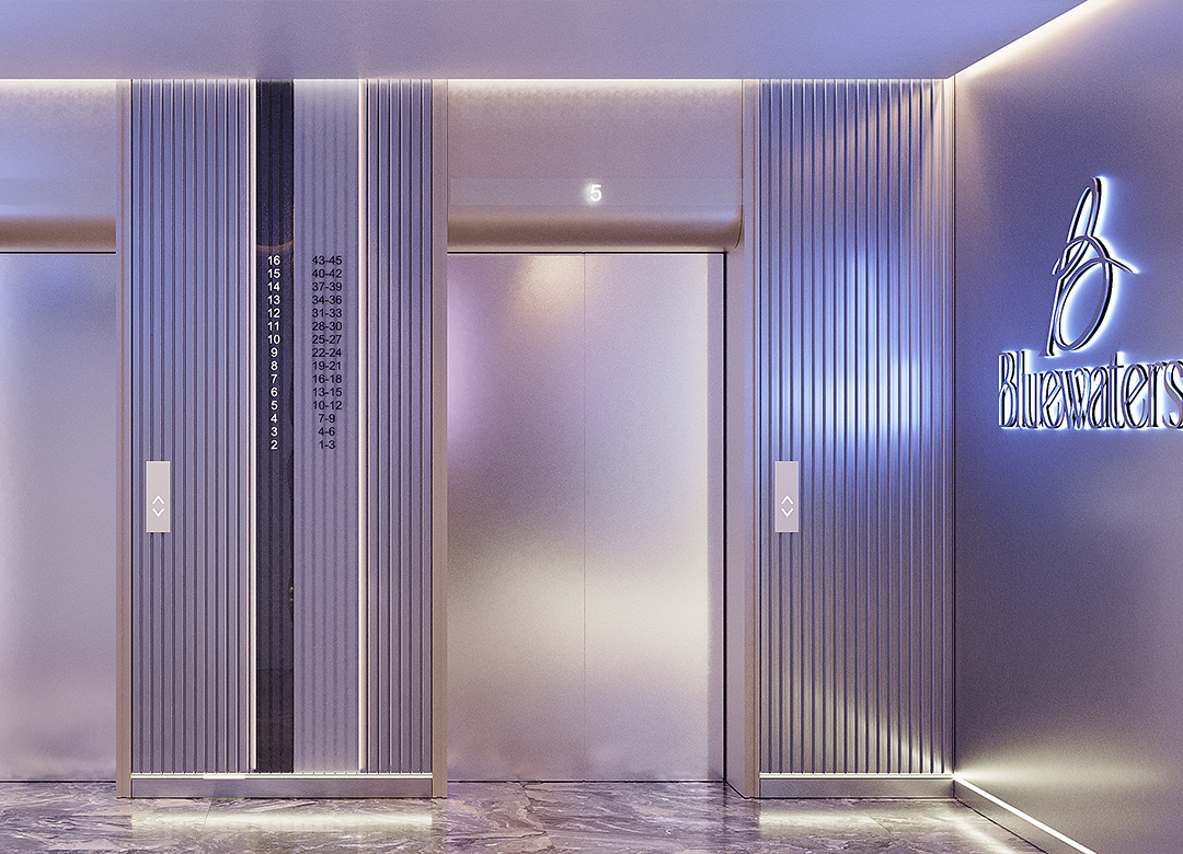 Лобби жилого комплекса Bluewaters создано для того, чтобы с первых шагов впечатлять своей элегантностью и комфортом